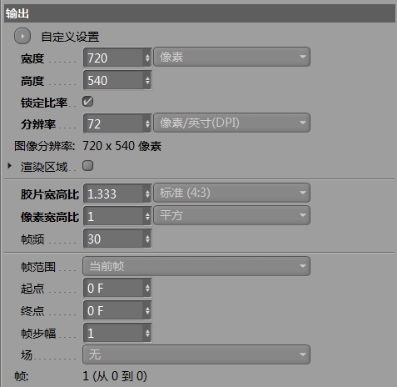 4.“输出”选项是设置渲染图片的尺寸、图片比例以及渲染帧范围。
