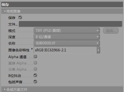 5.“保存”选项是设置渲染图片的保存路径和格式。