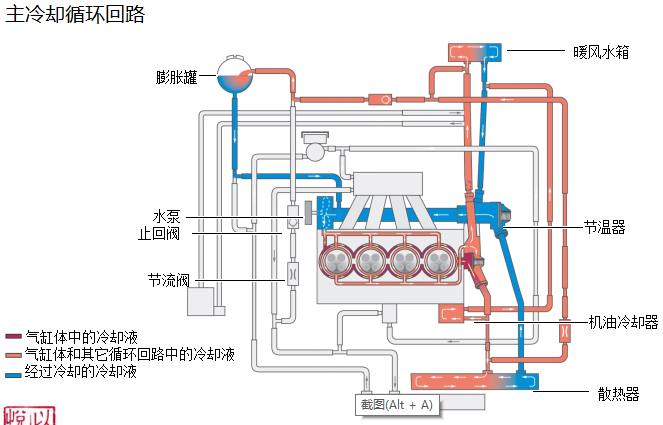 (1)一层为主冷却循环:缸体循环与缸盖循环