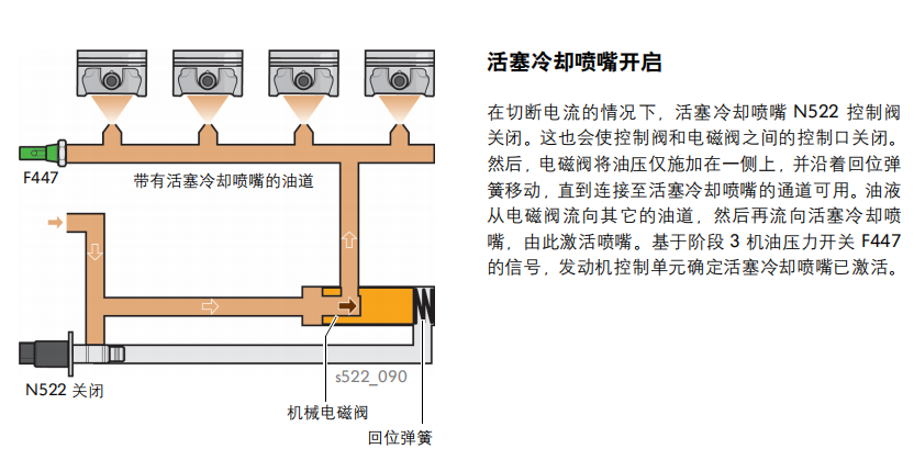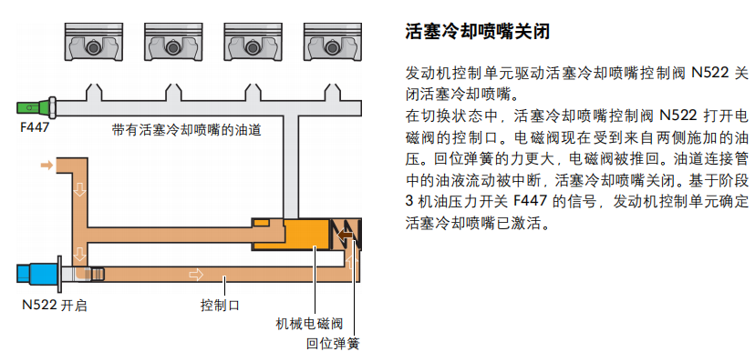 学习任务:可控式活塞冷却喷嘴及控制阀安装位置与功能