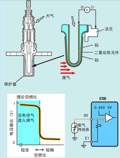 一、阶跃型氧传感器(用于后氧传感器,主要是氧化锆式氧传感器)