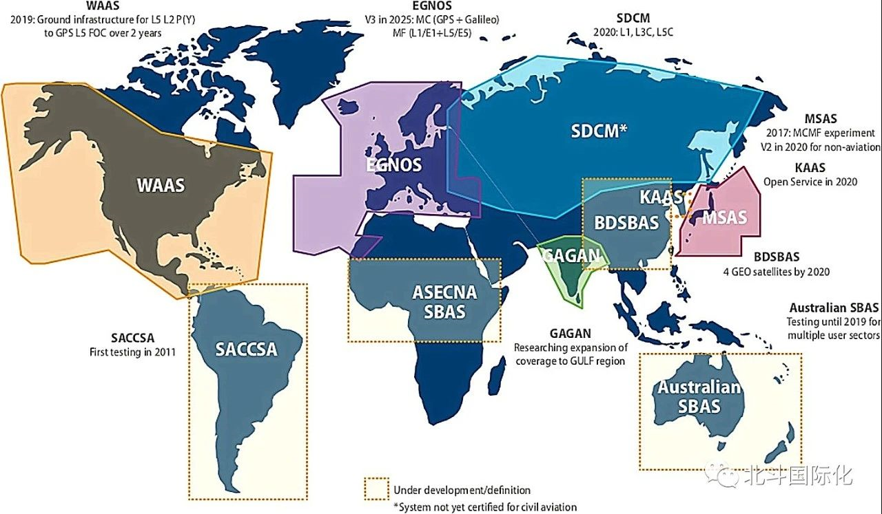韩国KPS系统将在未来十年持续发展他们的区域卫星导航系统,其覆盖范围将与日本QZSS系统的覆盖系统发生重叠。日本QZSS系统将在未来进一步扩展到7颗卫星。5.3 星基增强系统