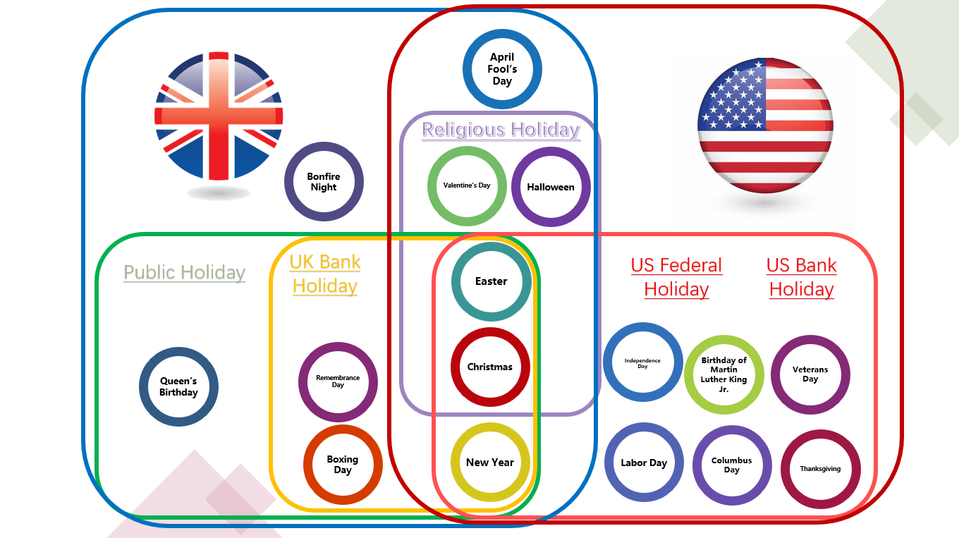 The public holidays are the ones which are the holidays announced and acknowledged by the government and the constitution of the United Kingdom. Public holidays have the special place in the constitution of the United Kingdom and these holidays may or may not have the fixed dates. Generally,public holidays include bank holidays, which have been recognized since1871. The name comes from the time when banks were shut and so no trading couldtake place On Bank Holidays, generally on a Monday, some shops and banks areclosed. Shops that open may follow different trading hours than normal andtransport may run on a reduced schedule. There will be no postal service. In Britain,the bank holidays in the four regions are a little bit different from eachother. some of the bank holidays do not have a special name, just named as bankholiday, and the purpose of which is to give workers one day off.