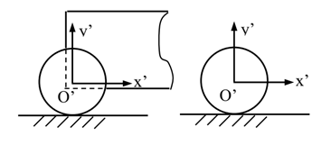 可取车厢为动参考体,以轮心为原点建立动参考系。 车轮的平面运动=车厢的平移+车轮绕O’的转动,单独的轮子作平面运动时,可在轮心固连平移参考系,同样可把轮子的平面运动分解为平移和转动的合成。