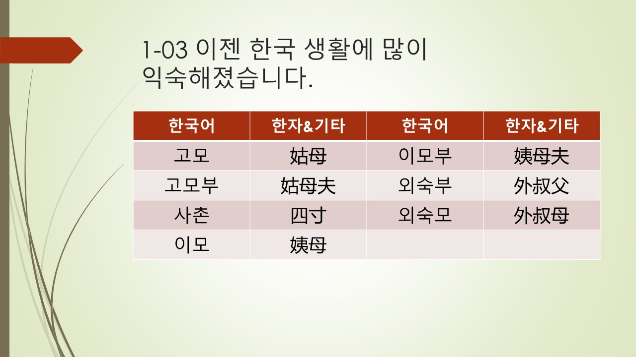 1.3 1과 3항 이젠 한국 생활에 많이 익숙해졌습니다.