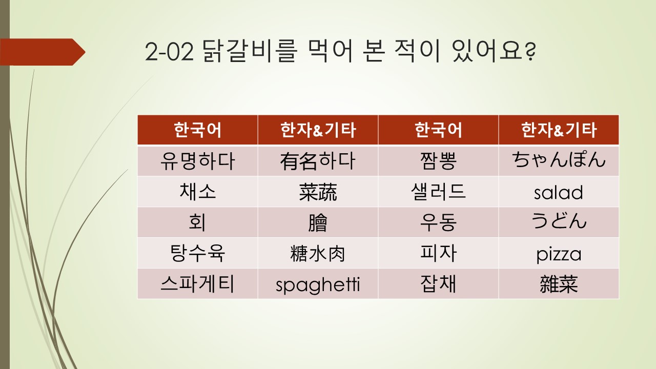 2.2 2과 2항 닭갈비를 먹어 본 적이 있어요?