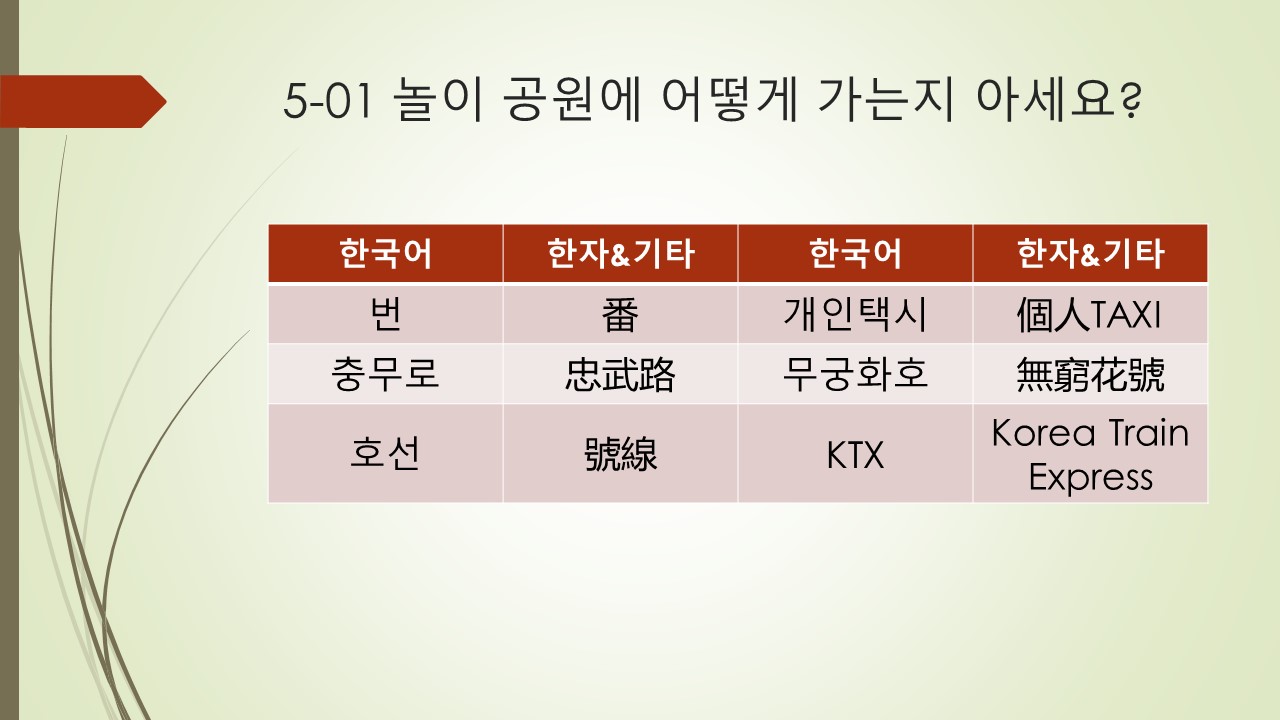 5.1 5과 1항 놀이 공원에 어떻게 가는지 아세요?