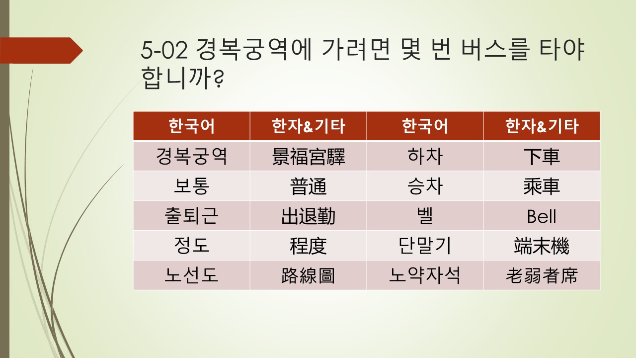 5.2 5과 2항 경복궁역에 가려면 몇 번 버스를 타야 합니까?