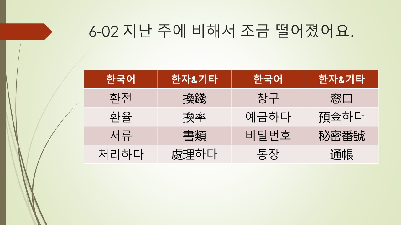 6.2 6과 2항 지난주에 비해서 조금 떨어졌어요