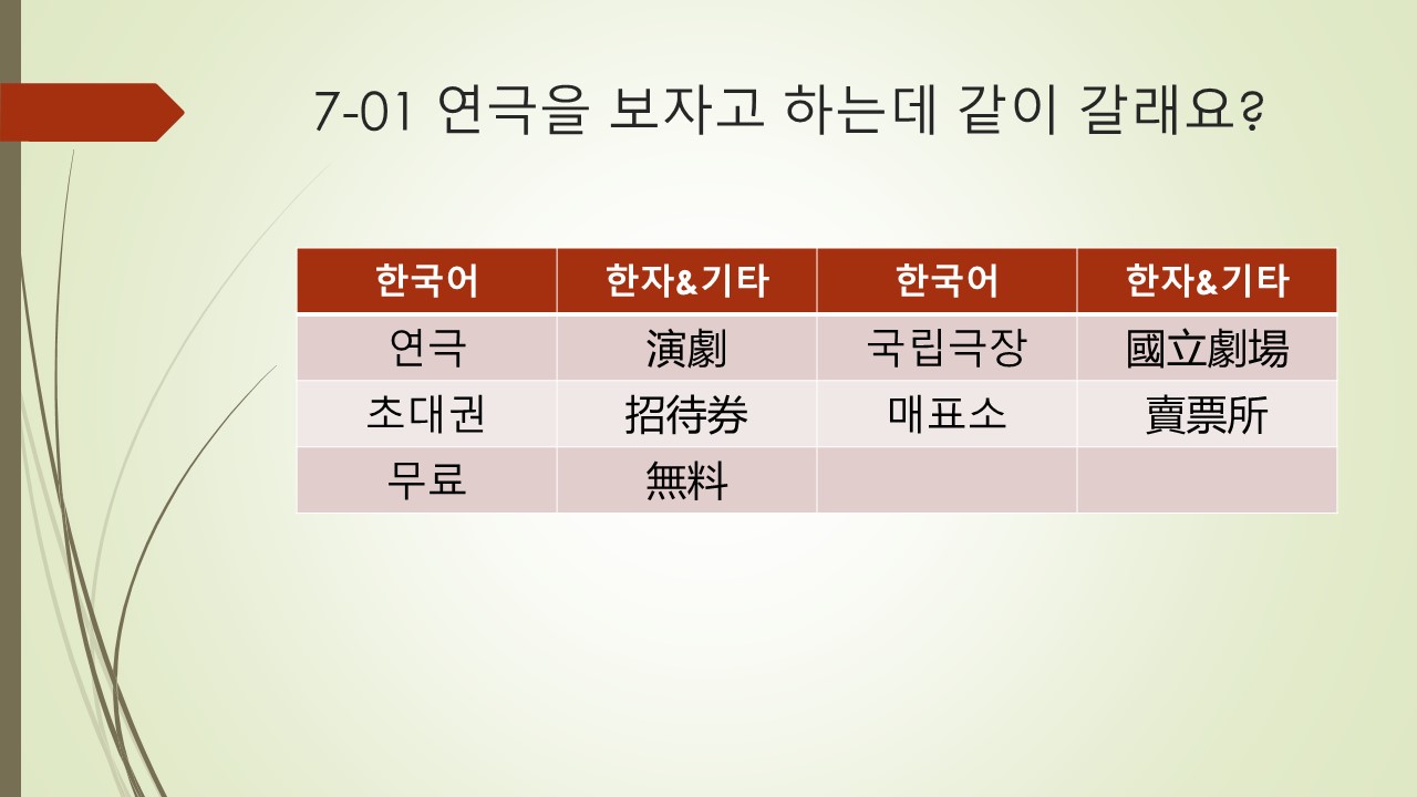 7.1 7과 1항 연극을 보자고 하는데 같이 갈래요?
