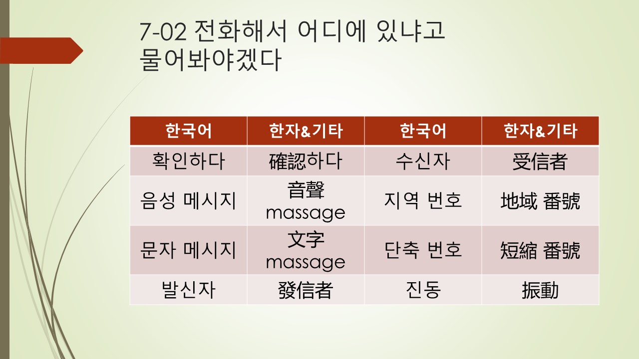 7.4 7과 4항 돌아오는 대로 전화 좀 해 달라고 전해 주세요