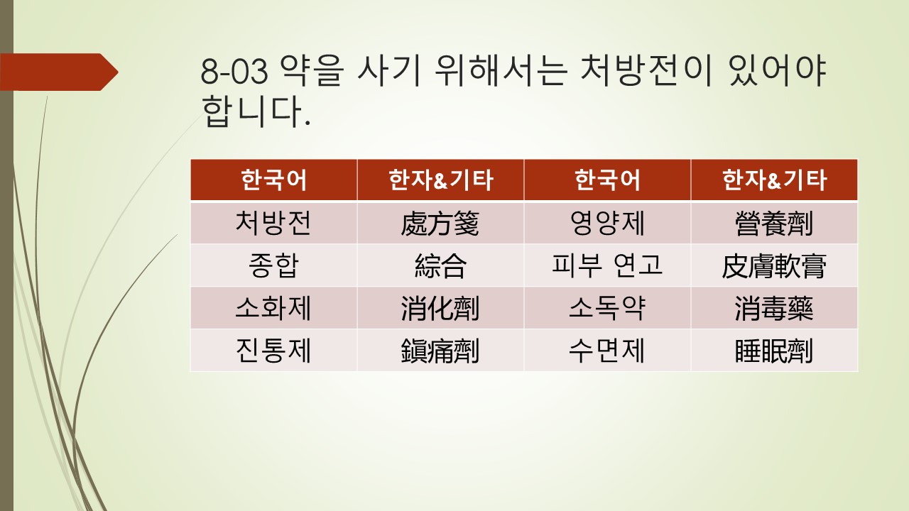 8.3 8과 3항 약을 사기 위해서는 처방전이 있어야 합니다