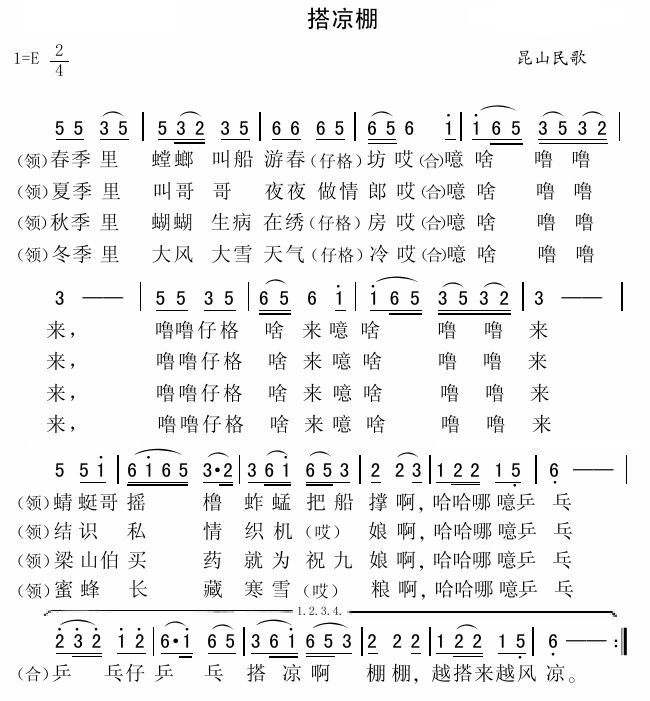 •代表作品:150首以上。《搭凉棚》10个版本,《划龙船》4个版本