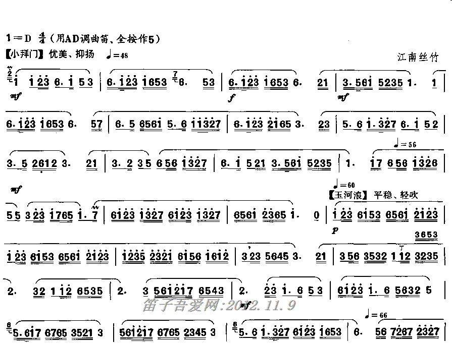 主奏乐器:二胡、曲笛