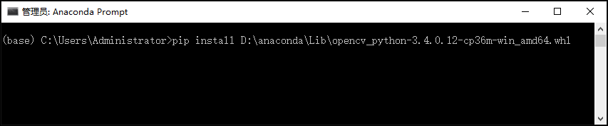 3.安装opencv3在“Anaconda Prompt”内使用语句:pip install 完整路径文件名