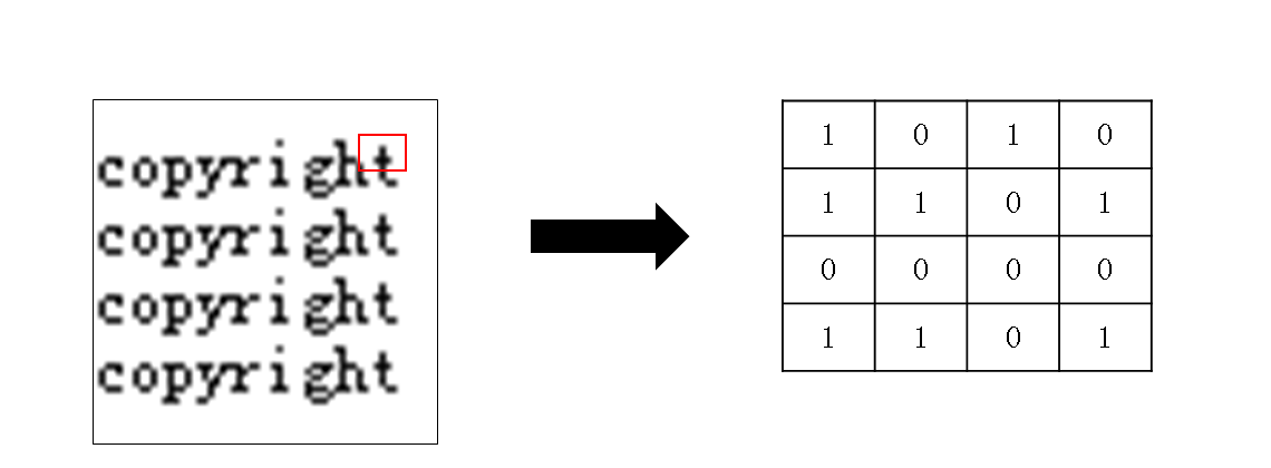 二值图像是指仅仅包含黑色和白色两种颜色的图像,在计算机中,通过一个栅格状排列的数据集(矩阵)来表示和处理图像。计算机在处理图像时,会首先将其划分为一个个的小方块,每一个小方块就是一个独立的处理单位,称为像素点,计算机会将其中白色像素点处理为“1”,将黑色像素点处理为“0”。