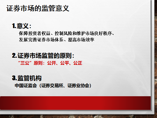 •8·10”事件的直接原因是决策失误和组织不严,以及基层的徇私舞弊。但从根本上说是地方政府对于股票市场的规律和风险认识不够,决策有相当大的随意性•深圳这场风波的另一个结果是加速了集中统一的证券监管机构的建立。1992年10月,国务院以最快的速度决定成立国务院证券委员会,并组建中国证券监督管理委员会。刘鸿儒临危受命,成为证监会第一任主席。从此,各地分头行事的监管权被收归中央,证券市场的依法治市终于有了一个承载的主体