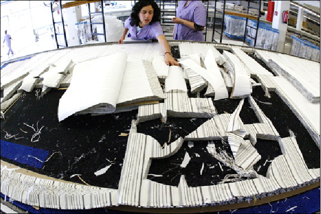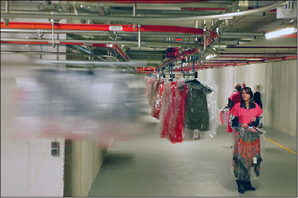 设计传送到工厂后,做出模型,计算机决定如何剪切最节省布料。