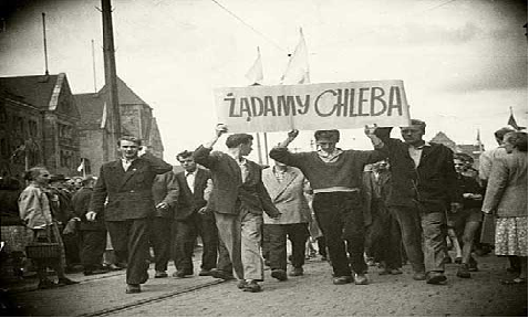 匈牙利人民政权建立后,照搬苏联模式,制造个人崇拜,引起人民强烈不满,终于爆发了匈牙利革命。游行标语:我们要面包。