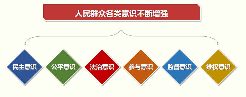 2. 人民生活水显奢提高,对美好生活的向往更加强烈,不仅对物质文化生活提出了更高要求,而且在民主、法治、公、正义、安全、环境等方面的要求日盆增长。