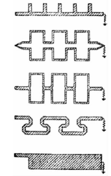 微带行波天线是由基片、在基片一面上的链形周期结构或普通的长TEM波传输线和基片另一面上的地板组成。TEM波传输线的末端接匹配负载,当天线上维持行波时,可从天线结构设计上使主波束位于从边射到端射的任意方向。