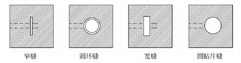 微带缝隙天线由微带馈线和开在地板上的缝隙组成,微带缝隙天线是把接地板刻出窗口即缝隙,而在介质基片的另一面印刷出微带线对缝隙馈电,缝隙可以是矩形(宽的或窄的)、圆形或环形。