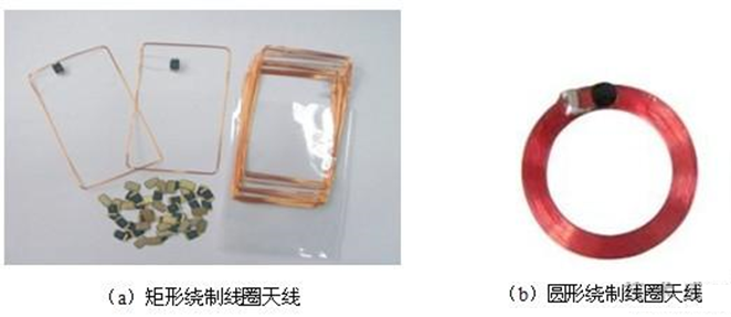 利用线圈绕制法制作RFID天线时,要在一个绕制工具上绕制标签线圈,并使用烤漆对其进行固定,此时天线线圈的匝数一般较多。将芯片焊接到天线上之后,需要对天线和芯片进行粘合,并加以固定。