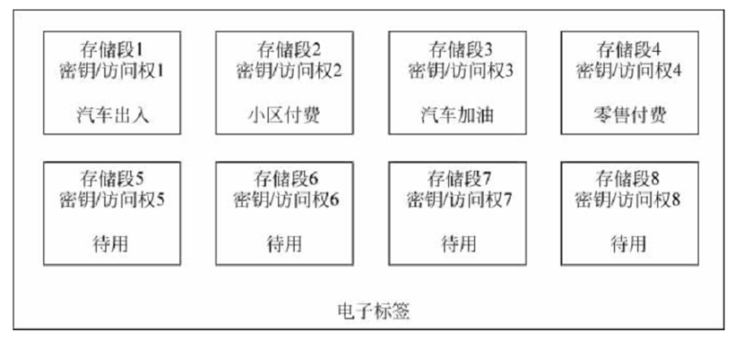 当电子标签存储的容量较大时,可以将电子标签的存储器分为多个存储段。每个存储段单元具有独立的功能,存储着不同应用的独立数据。并且各个段单元有单独的密钥保护,以防止非法的访问。