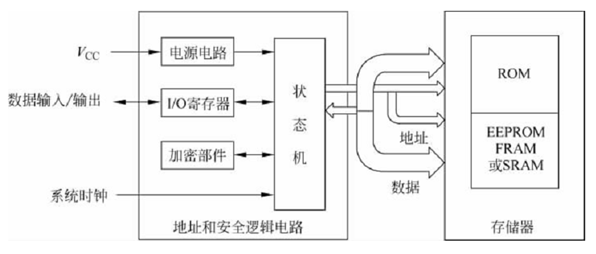 地址和安全逻辑电路主要由电源电路、时钟电路、I/O寄存器、加密部件和状态机构成。