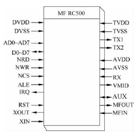 Philips公司的MF RC500芯片主要应用于13.56MHz,是非接触、高集成的IC读卡芯片。该IC读卡芯片利用先进的调制和解调概念,集成了在13.56MHz下所有类型的被动非接触式通信方式和协议。