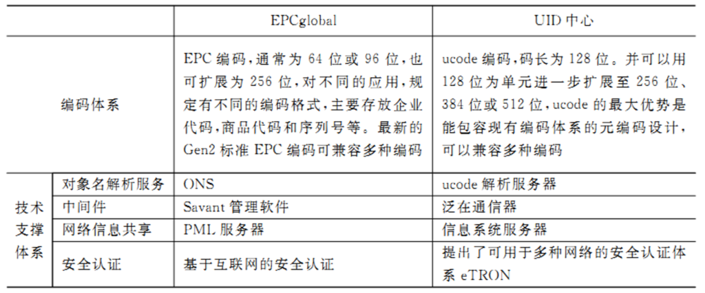 日本UID标准和欧美的EPC标准,主要涉及产品电子编码、射频识别系统及信息网络系统3个部分,其思路在多数层面上都是致的。但在使用的无线频段、信息位数和应用领域等方面有许多不同点。例如,日本的射频标签采用的频段为2.45GHz和13.56MHz,欧美的EPC标准采用UHF频段,为902~928MHz。日本的射频标签的信息位数为128位,EPC 标准的位数为96位。