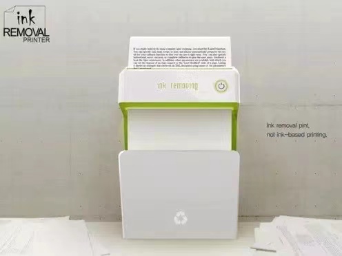 此款Ink Rvmoval的概念设计,通过去处墨印的手段,提倡纸张的循环使用。