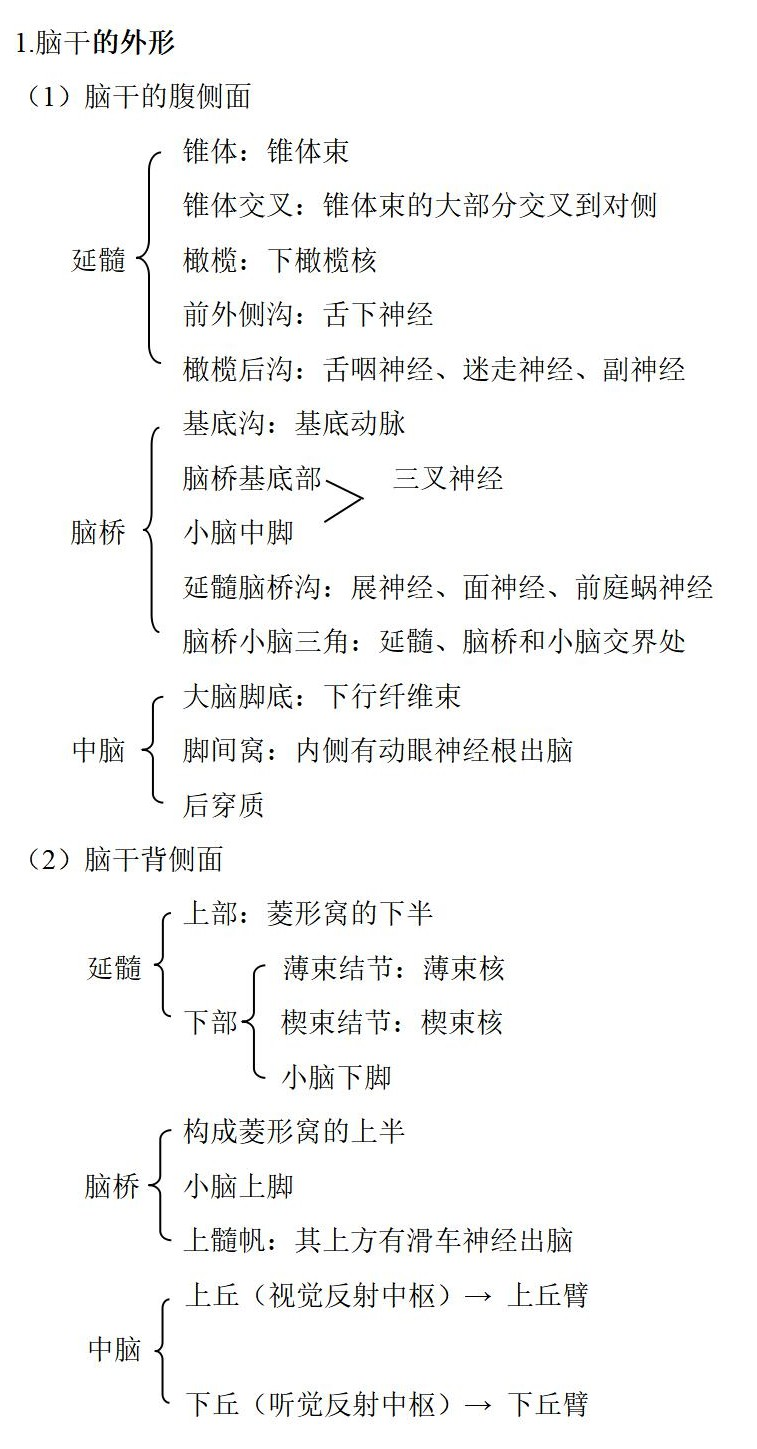 2.第Ⅲ~Ⅻ脑神经的名称、与脑干相连位置、排列规律。