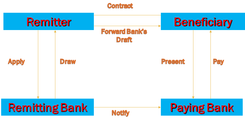 Remittance: transfer of funds from one party (payer) to another (payee) among different countries through banks.