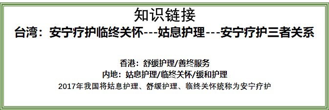 1.尚未建立起适合我国国情的临终关怀模式 我国的临终关怀起步于20世纪80年代后期,目前普遍采取的有两种模式。一是以医院为主,社区服务与家庭关怀相结合,在费用上国家、集体、社会相结合。二是以乡村为着眼点,将家庭临终照护与社区临终关怀相结合,涉及的方面多、人员广,在实际操作中比较难以统一实施。