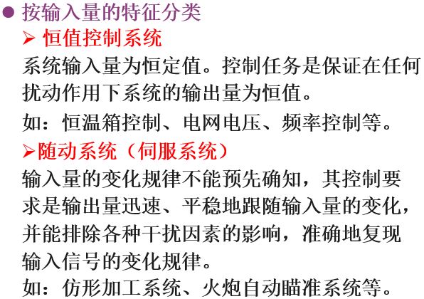 分为恒值控制系统(镇定系统)、随动系统(伺服系统)、过程控制系统(程序控制系统)。