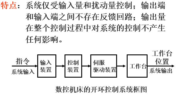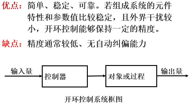 开环控制方式是指控制装置与被控对象之间只有顺向作用而没有反向联系的控制过程,特点是系统的输出量不会对系统的控制作用发生影响。可分为按给定量控制和按扰动控制两种形式。