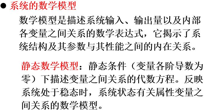 数学模型:描述系统的数学表达式。在静态条件下(即变量各阶导数为零),描述变量之间关系的代数方程称为静态数学模型;描述变量各阶导数之间关系的微分方程为动态数学模型。在控制系统的分析和设计中,首要建立系统的数学模型,可以摆脱不同类型系统的外部特征,研究其内在共性运动规律。