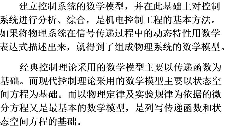 控制工程的基本方法:就是建立控制系统的数学模型,在此基础上对控制系统进行分析、综合。