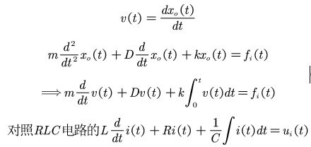 为了进一步揭示机械系统和电气系统微分方程之间的相似性,我们用质量块的位移速度作为变量,得到如下: