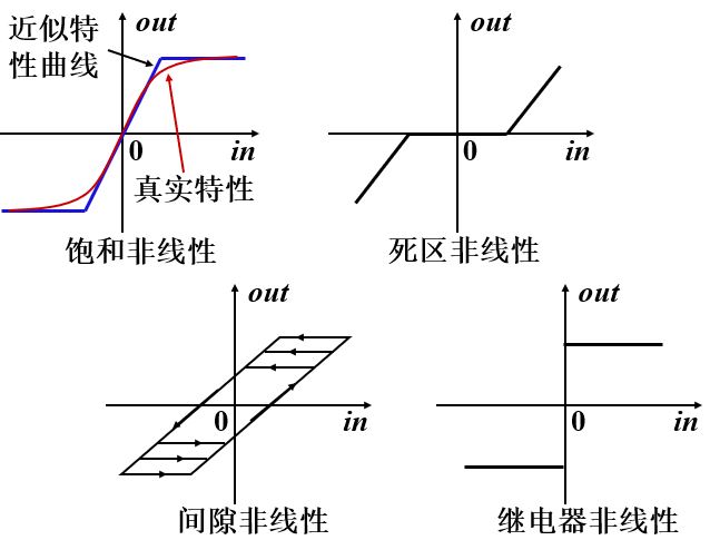 上述方法称为小偏差线性化方法。这是基于这样一种假设:输入量和输出量只是在静态工作点附近作微小变化。对于某些眼中的典型非线性,如继电特性、间隙以及摩擦等,不能进行求导运算,所以只能作为非线性问题来处理。