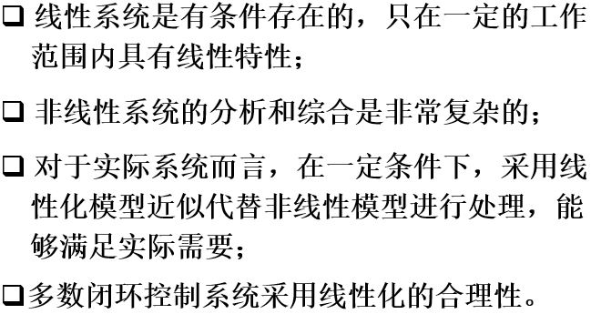 (3)线性化只适用于非本质非线性系统。即在额定工作点周围的工作范围内没有间断点、折断点的单值函数。
