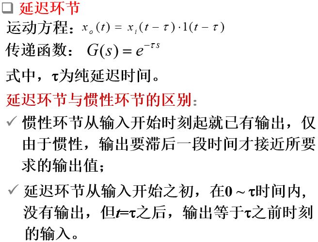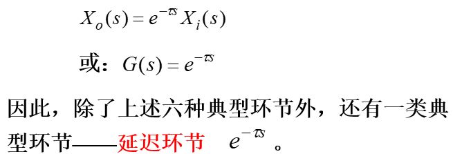 除此以外,实际系统中还存在纯时间延迟现象,输出完全复现输入,但是有延迟,此时: