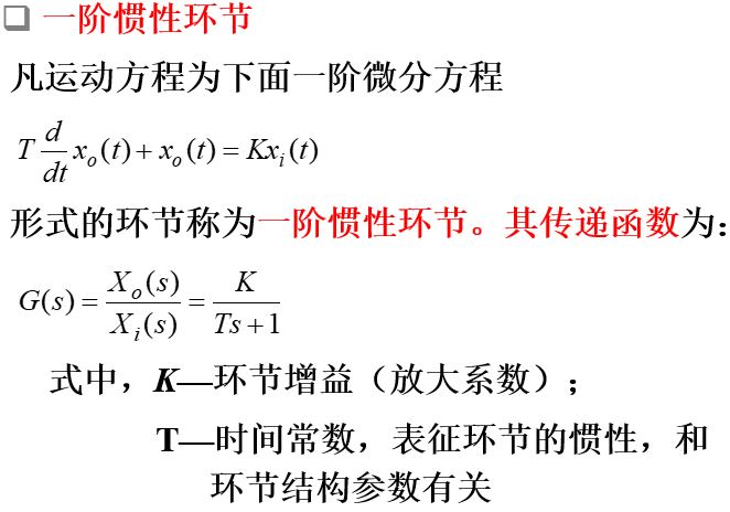 (4)典型环节的概念只适用于能够用线性定常数学模型描述的系统。