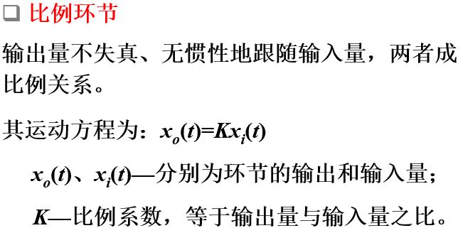 环节:具有某种确定信息传递关系的元件、元件组或元件的一部分称为一个环节。经常遇到的环节称为典型环节。