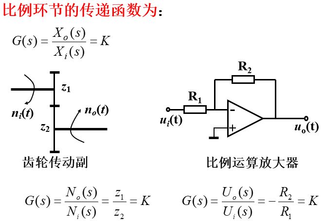 上述各典型环节,是从数学模型的角度来划分的。它们是系统传递函数的最基本构成因子。在和实际元件相联系时,应注意: