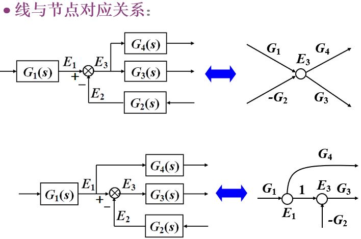 描述系统变量之间关联关系的另一种方法是由梅逊(Mason)提出的,以节点间的线段为基本的描述手段。这种基于线段的方法就是信号流图法。优点在于:对流图进行化简和变换,就可以利用流图增益公式,方便地给出系统变量之间的信号传递关系。