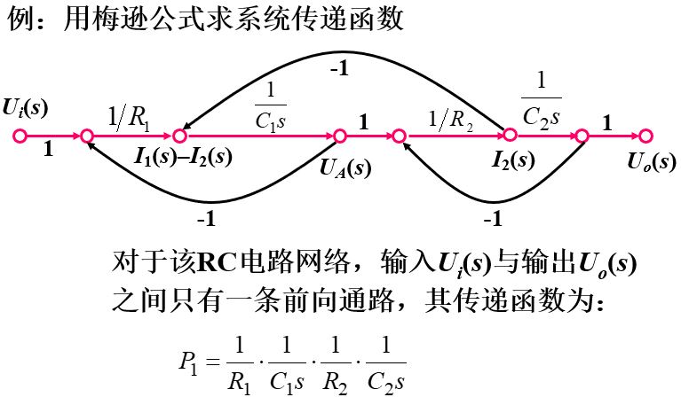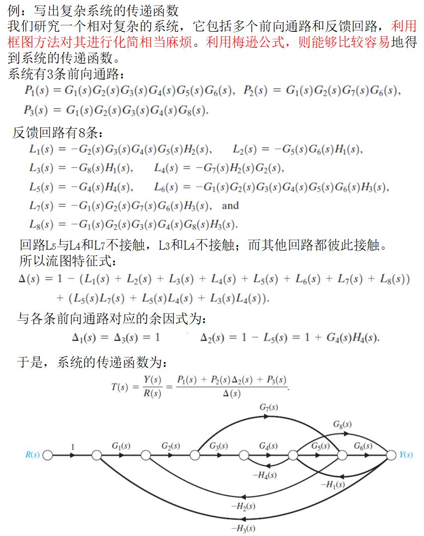 信号流图的输入节点(输入变量)到输出节点(输出变量)的系统传递函数,可直接用梅逊公式求取。