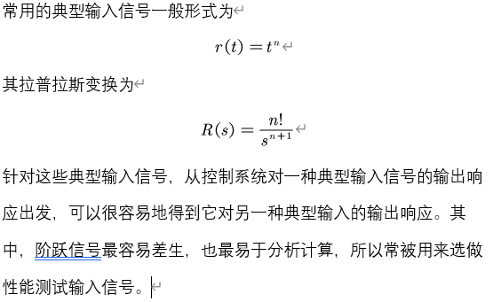 因此,采用标准典型输入信号是适当的。利用典型输入信号,还可以比较不同设计方案的优劣,许多控制系统实际输入信号与典型输入信号非常类似。