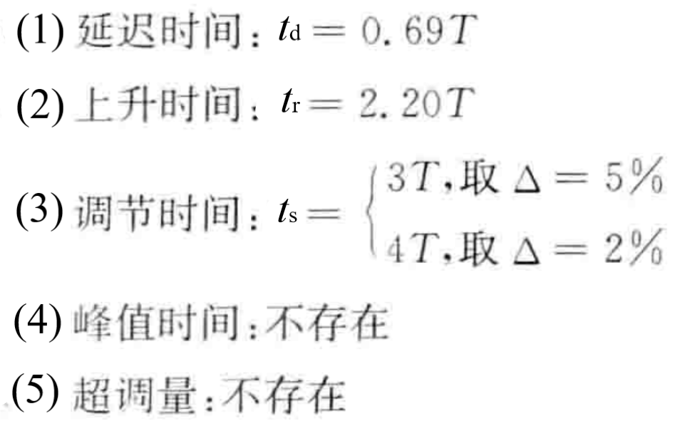 当r(t)=1(t)时,即阶跃信号激励下,一阶系统动态性能指标如下: